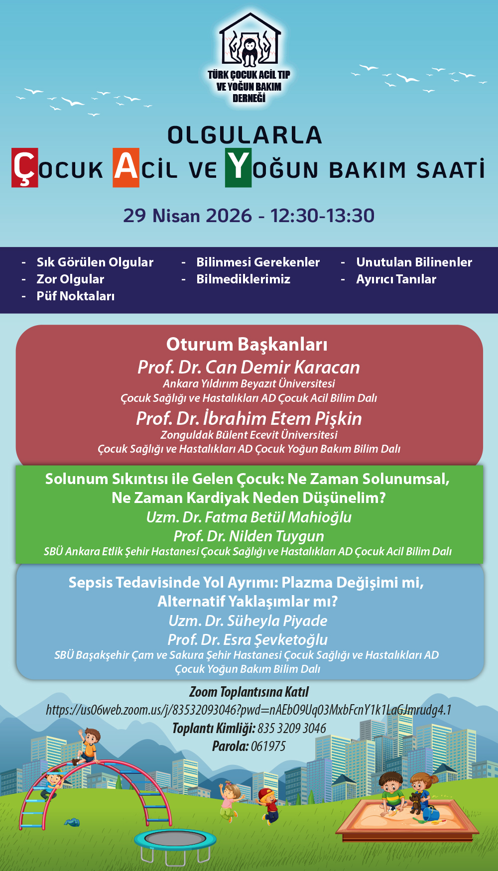 The mission of the Society is the advancement of Pediatric Emergency and Pediatric Intensive Care Medicine in the Republic of Turkey. Public advocacy, professional training and promotion of scientific research are main areas of activity.
